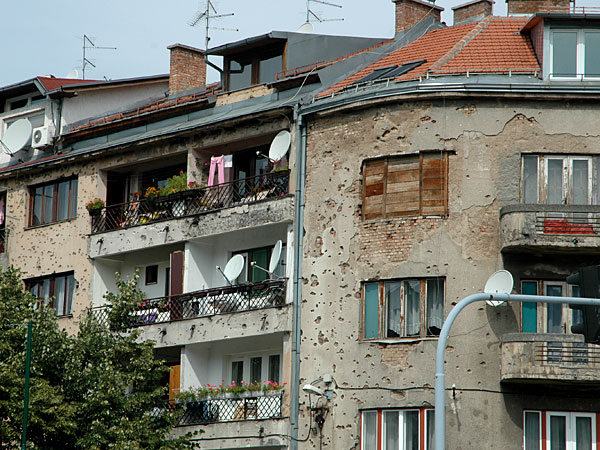 Also in Sarajevo the wounds of the war are highly visible, even if they were even more visible in Mostar. Driving along ”Sniper´s Alley” towards the center we could see blocks of flats that had been badly hit and abandoned. ”Sniper´s Alley” was a well known street during the siege. The Serbs snipers on the hills were shooting at civilians crossing the street. The Holiday In along