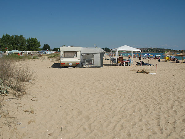 Today we hit the road before we even had decided where to go. We drove 120 kilometers along the coast to a place right outside Cemomorec with a nice beach, a bar and mostly young Bulgarians. South of Burgas seems to be the place where the Bulgarians spend their time at the sea. In the big resorts up north there are mostly crowded with charter tourists.