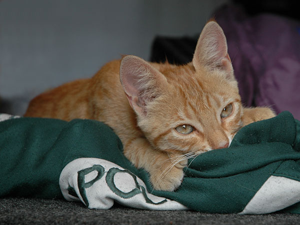 Today we had a visitor in our car – the cutest cat you have ever seen. The cat fell totally in love with Berts sweater and did not want to leave.