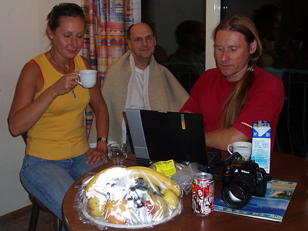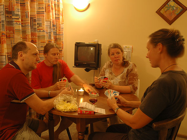 They had their suitcases full of stuff for us. A very longed-for Melitta filter holder, coffie, the local newspaper, the evening newspaper, several kilo of salt liquorice for Bert, MP3 music, three new scoop-shaped drinking-vessel, crispbread, a USB-TV and a GPS contact – it was like Christmas! Last but not least Kajsa has prepared a DVD for us with greetings from our parents and friends in Sundsvall. It was a lovely and much appreciated present!