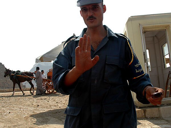 We bought our car to the pyramids and parked in front of the pyramids. A sniffer dog went trough our car and the guards confiscated our kitchen knife. We got it back on the way out.