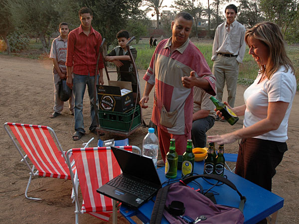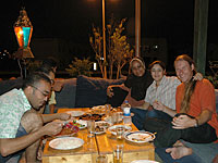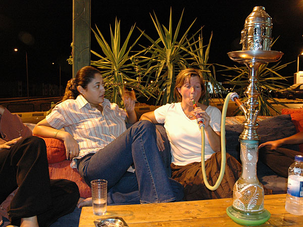 . After a long hot day in the car that was perfect! As soon as the sun was set Sallomy and her staff sat down to have the first meal and first drink of the day. We got invited to share the meal with them and to smoke the water pipe afterwards. We tried both ordinary tobacco and apple flavor. Later in the evening Sallomy took us for a