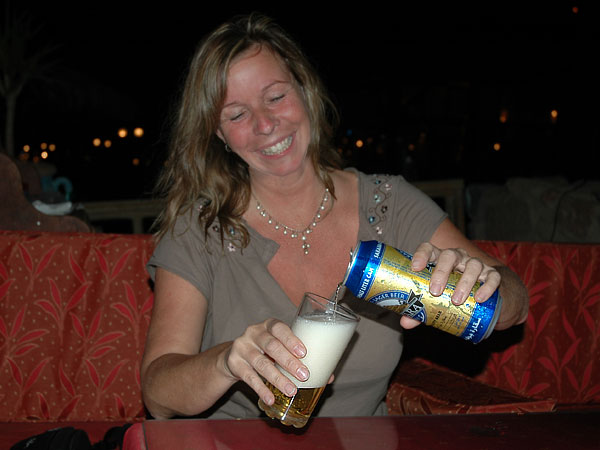 In the evening Bert was feeling good enough to join us for dinner. There are a lot of cozy restaurants to choose from, but some of them do not serve alcohol because of Ramadan. That is usually not a problem. They don’t mind if you bring your own beer to the restaurant.