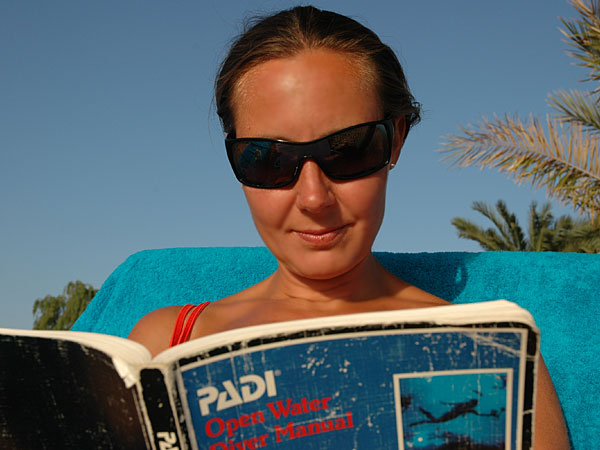 It was a lot of theory that we needed to go through after a five year dive break. We spent this morning at a restaurant having breakfast and reading. Everyday