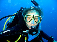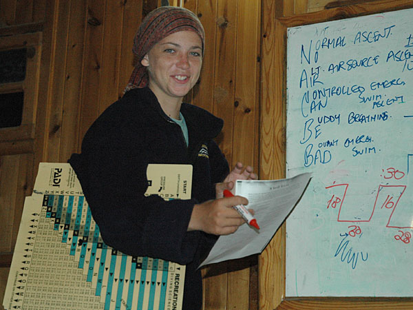 Deep down in the canyon we did a counting skill to prove how our brains get affected by the depth. Catharina felt the nitrogen narcoses; she looked really stupid trying to get the numbers together by counting Lauras fingers. Anneli laughed so hard that she almost lost her regulator. Later Laura cracked a raw egg which we played ping pong with.