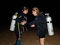We got back to Dahab early so Bert and Catharina decided to do the night dive. It is a dive included in the Advanced course. The place was set to Light house because we had been there before and it is interesting to see how a dive site changes in dark.