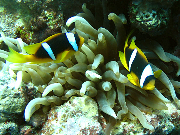 Bert has recovered completely from his stomach complaint and today we went snorkeling at the Blue Hole, five kilometers north of Dahab. It was a really nice snorkeling spot by the shore with a lot of beautiful fish and corals right below the surface.