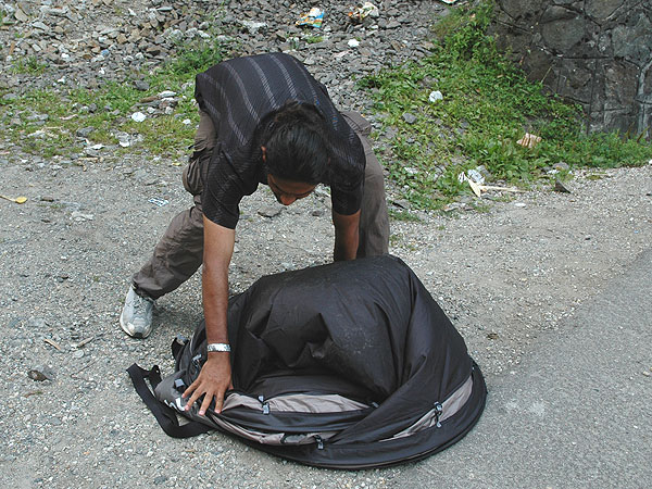 We took the incredibly beautiful Trans-Fagarsan Highway, a winding road that climbs a high mountain pass. Bert skipped the shower this morning but decided that was a bad idea, so he took one