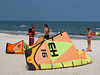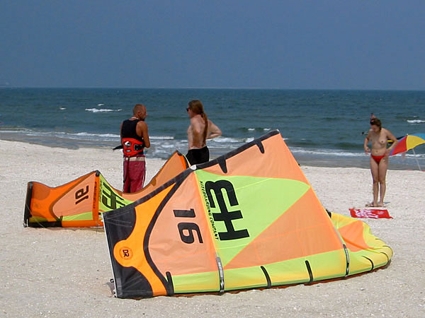 At the beach we observed five brand new Hobie Cats (small catamarans). We asked if we could rent one, but that was impossible because it was a Volvo event only for invited guests, and today they also had a photo shoot. But the woman in charge happened to pass by and she said that we could go sailing with Anna if we wanted to. We had a great time with Anna and stayed out for several hours, while they took photos with a monster lens from the beach.
