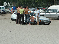 A hot day at the beach, again. The Romanians keep bringing their cars in to the beach and they all get stuck! Up to a few years ago they had problems in Mamaia with gypsies steeling and robbing tourists. To prevent this Mamaia from getting a bad reputation by this the authorities have worked hard on this matter. But still we get warned about the gypsies all the time and by different people. Today a lady saved our towelsb and blankets that we left at our sun chairs from being stolen by the gypsies.