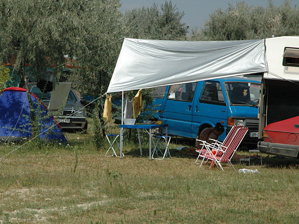 We have now switched camping site. The last one was so crowded that we were not able to put up our sunroof. The new camp site is much nicer, cleaner and more spacious. As soon as we got our sunroof up we took a nap in the shade.