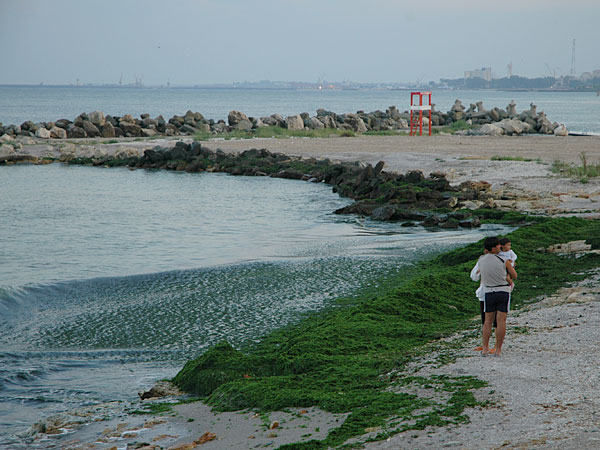 We drove the 230 kilometers to the coast. Mamaia was the place that we had choosen for our first stop. Mamaia is the biggest and most well known resort along the Romanian Black Sea coast, and a far better place to be in the heat. In the new highway between Bucharest and the coast we where very, very close to run out of petrol. There were no exits or petrol stations for more than a hounded kilometer from Bucharest!
