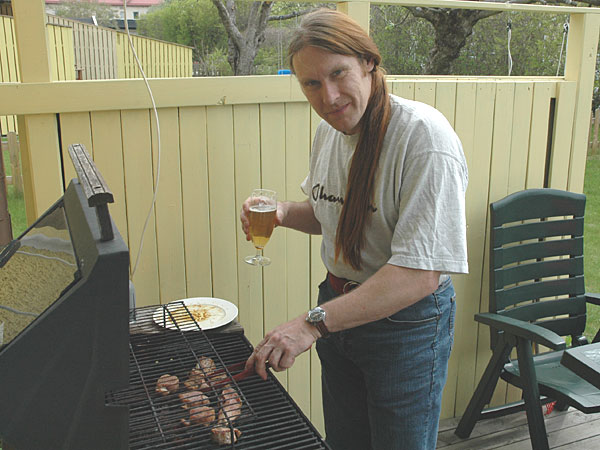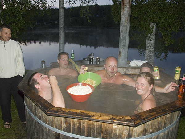 Bert work mates had a party today. We joined them later in the evening and took a dip in the wood heated tub. Of course we took the Saab to the party and spent the night there.