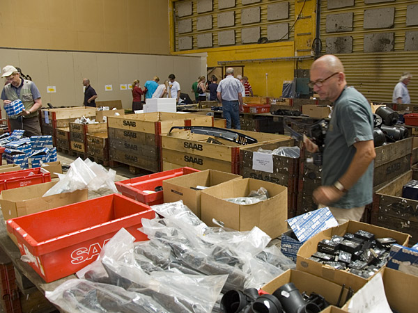 As every year Saab has an outlet of spare parts at rock bottom prices. We bought a petrol heater, engine preheater, new window and some other stuff.