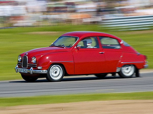 All day today there was Saab racing at Kinnekulle Ring. The first to go was the two-strokes, then the V4:s, and after that the rest of the Saabs. The two-stokes really put the pedal to the medal. With their nice old cars they spin around, went off the track and was close to crash.