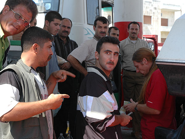 We thought that the petrol ought to be cheaper in Syria and we passed the border with a nearly empty tank. That was not a cleaver very move. The petrol was only 0,5 $US, but that makes not much of a difference when there is no petrol. We traveled 80 kilometers and tried to buy petrol at eight different places without any success. There was absolutely no petrol anywhere.