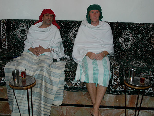 To find a haman we got to search in narrow, cozy alleys behind the souk. Since most of the hamans is for men only, Bert had to go by himself. Anneli and Catharina finally found a small local haman which had access for women at special hours. There were only women masseuses and washers.