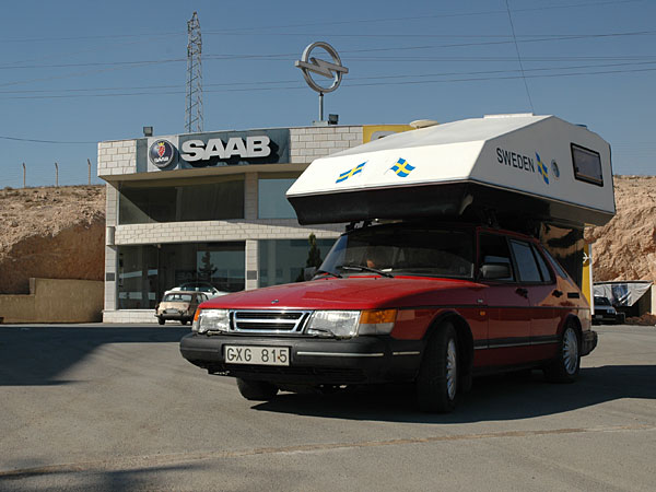 On the way out of Damascus we found a SAAB salesman. We stopped for a new air filter since ours is filled with dust and sand. Unfortunately they only had spare parts from 1993 and newer.