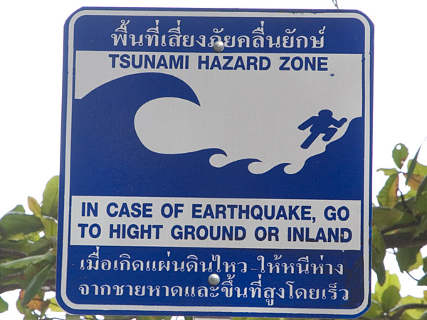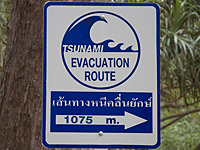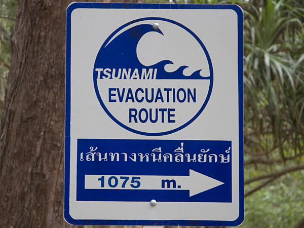 At the beach along the coast line there are warning signs telling “this is a tsunami area”. We can tell the Thai people take the tsunami seriously. In some areas it is only 60 meters in between the signs. Some of the signs are big maps over all the