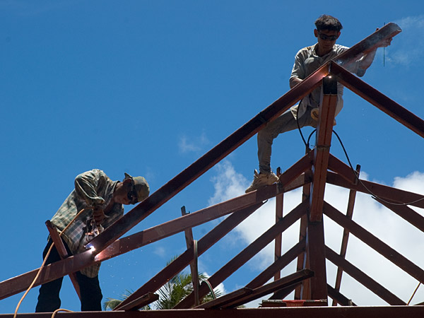 På eftermiddagen åkte vi in till resebyrån i Phuket Town för att köpa flygbiljetter. Bygget av resorten