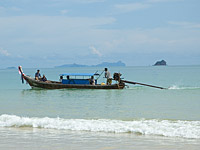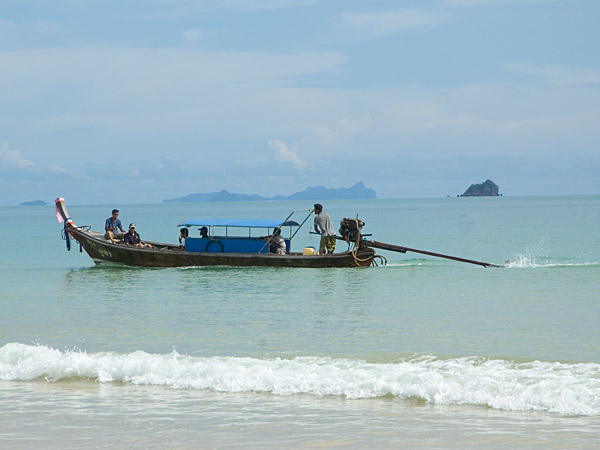 We are now in Krabi and have found a super nice, white, long, lovely beach. The sea is dotted with small islands. The turquoise clear water is lukewarm. We are parked by a restaurant at the beach that serves fantastic Thai food and ice cold Singha in chilled glasses.