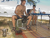 Nu har Christian och Elisabet dykt upp också. Vi käkade frukost på beachen. Christian lagade pannkakor åt oss.
