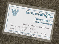 Vi blev väl emottagna på detta lilla Thailändska sjukhus. Snabbt och effektivt gick det dessutom. På mindre än en halvtimme hade Bert fått en patientbricka, blivit inskriven, träffat läkaren samt fått ut medicinen. Det finns nog inget svenskt sjukhus som skulle klå det. Inte blev vi skinnade heller, 65 Skr gick kalaset på, inklusive medicin.