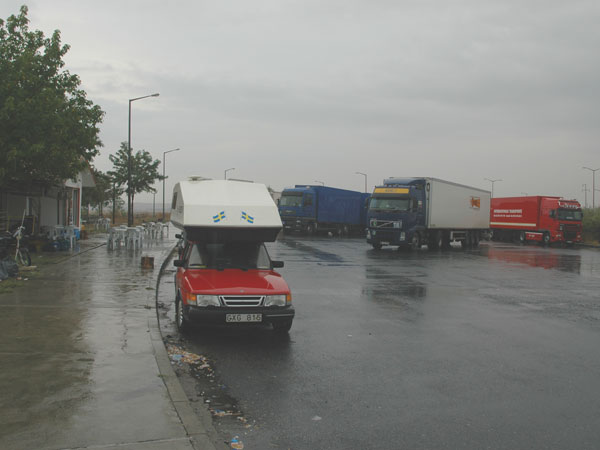 All night the rain was poring down. We stopped to sleep at a truck-stop 150 kilometers from Istanbul. The first five kilometers that we drove towards Istanbul, we saw three cars in the ditch, probably caused by aquaplaning. They were all by the brand of BMW.