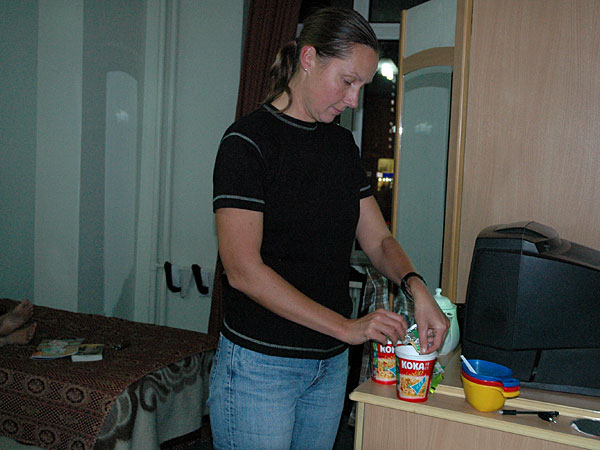 Right after the border we had to find gasoline for the car. The first two gas stations didn’t sell gas to foreigners. The third one was quite expensive = 11 cent/liter but at the fourth station we felt that we could afford it. We paid 8 cent/liter… Isn’t that unbelievable cheep!