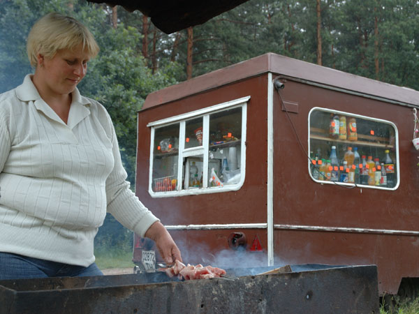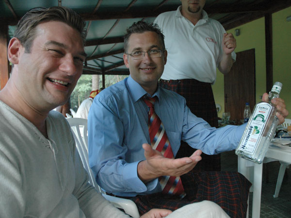 When we came back there was a big party with about 50 people going on at the restaurant just outside our camper. The Russian hospitality proved itself immediately and we got invited to the party. The company having the