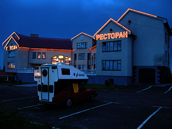 Tonight we ”camped” the Ukarian way = took a hotel room for 22$ for the fist time on this trip. We just had to get hold of a washbasin to wash our clothes. All the washing took us three hours! We managed to persuade the hotel maid to at least take care of our sheets and towels. This gives us a two weeks slack in the hunt for new sheets…