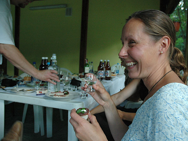 . Catharina tried to take small sips to save her from getting to drunk, but that did not work. We had to drink it all – every time… We also made friendships toasts and are now considered to be ”real Russians”. That’s good to know!