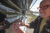 Now we are two months in on our trip we think it is time to update our car. We draw the route up until now by hand on our map on the hood and put the name of the countries visited on the side of the Toppola.